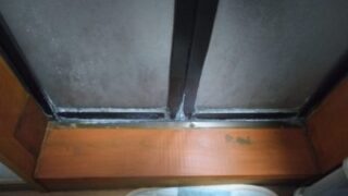 空き家のベランダに出るドアに付いていたSHOWA SARCENT のドアノブ。長年交換されておらず、ラッチが完全に固着して鍵がかからない状態になっていました。一時的に紐でドアが開かないよう固定していましたが、防犯面でも不安があり、さすがに限...