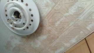 天井のペンキ塗りを行いました。2階のバルコニーからの雨漏りで天井にカビ?が生えたのか色が変わってしまいました。長い間放置していたのですが修繕することにしました。雨染み使用した道具刷毛(ダイソー100均)ペンキ(コーナンLifelex 160...
